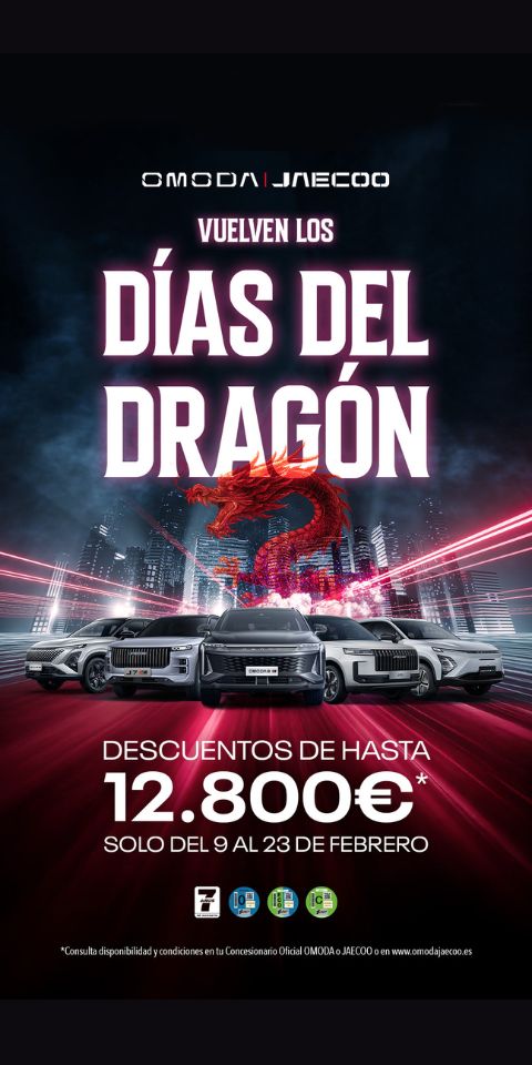 Cartel de los Tumasa Days y foto de los nuevos modelos de Omoda Jaecoo, Ebro, SWM, Suzuki y Mazda.