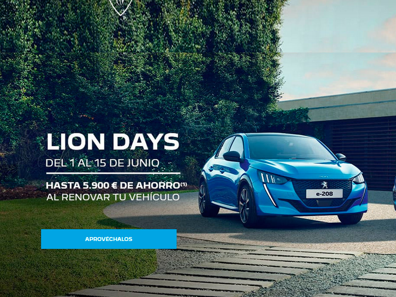 Imagen del Peugeot e208 al lado del título Lion Days en Huesca y Monzón
