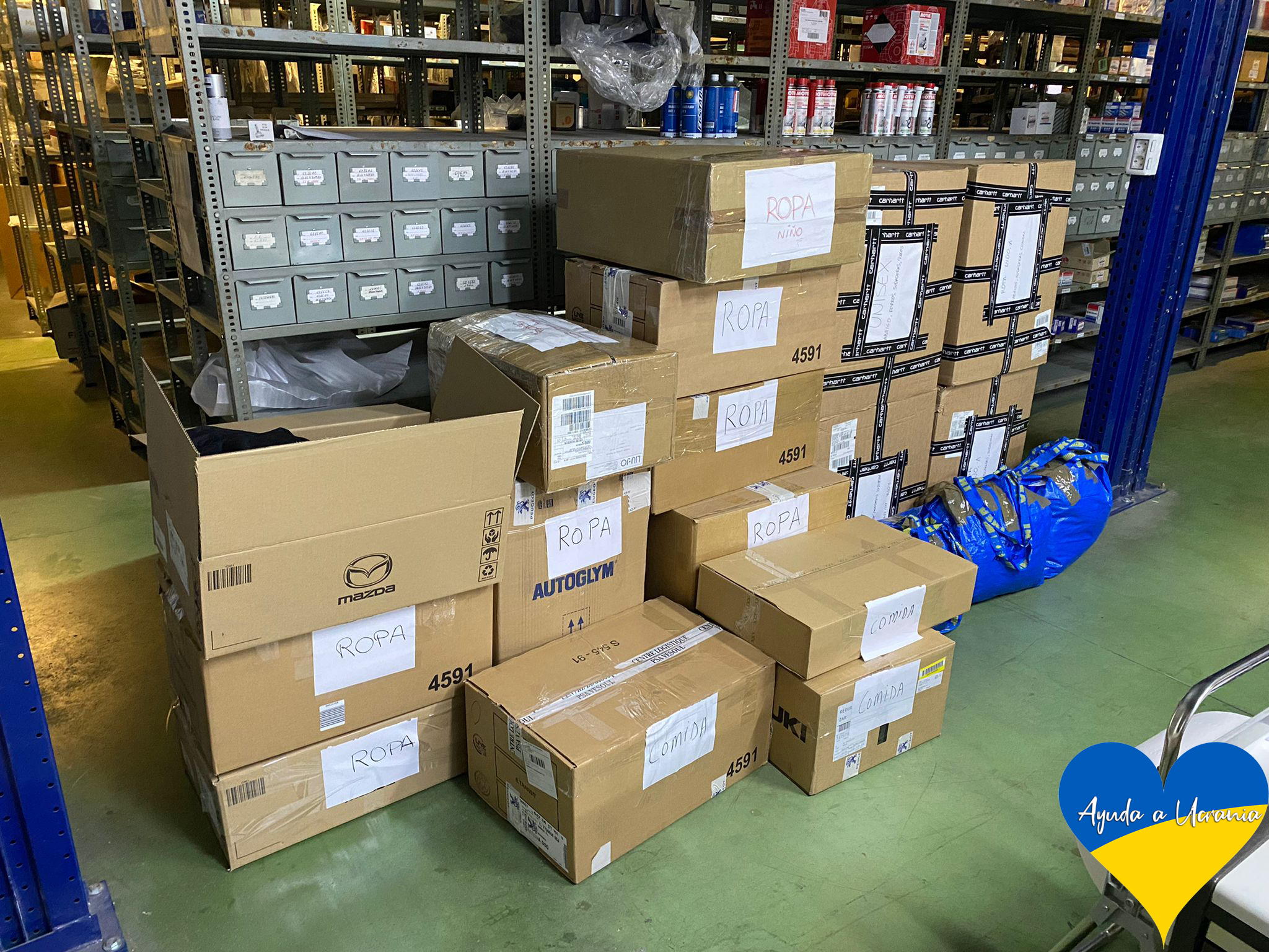 Imagen de los donativos de los trabajadores de Tumasa para los refugiados ucranianos: ropa, comida y medicamentos
