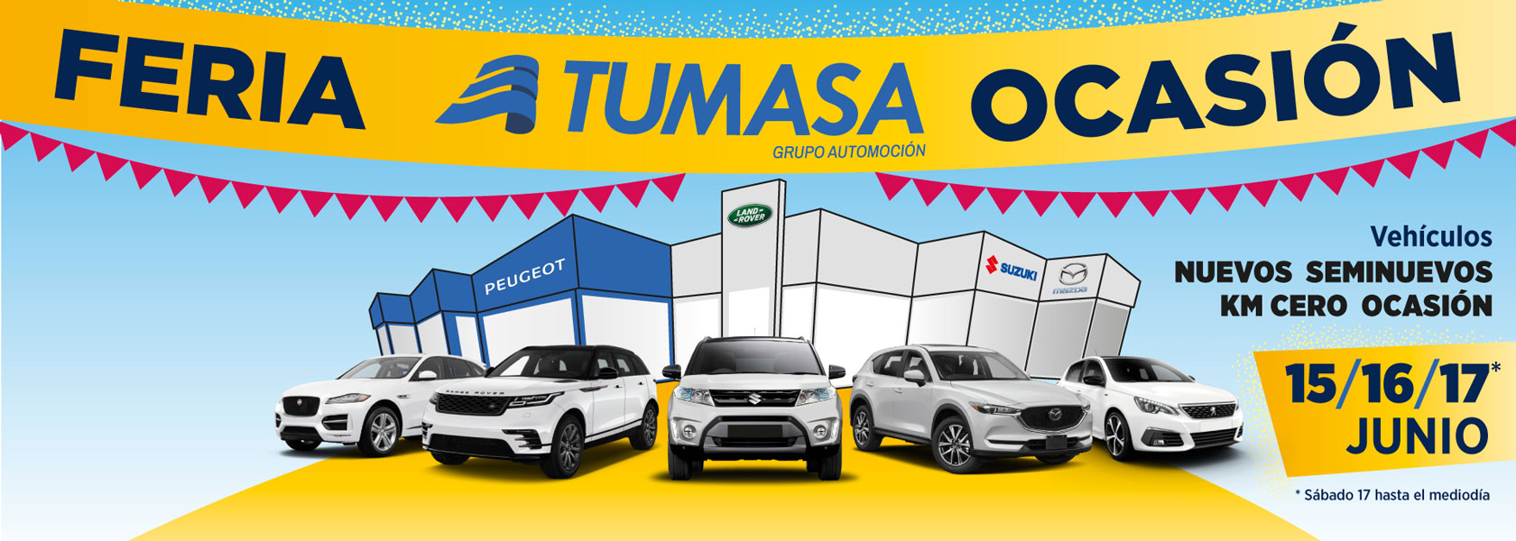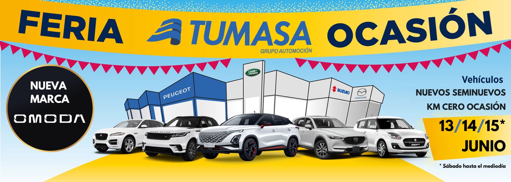 Feria Tumasa Ocasión: del 13 al 15 de junio de 2024 con vehículos Peugeot, Jaguar, Land Rover, Mazda, Suzuki y como novedad la nueva marca Omoda. En Tumasa Ocasión Huesca y Monzón: vehículos nuevos, seminuevos, km0 y de ocasión