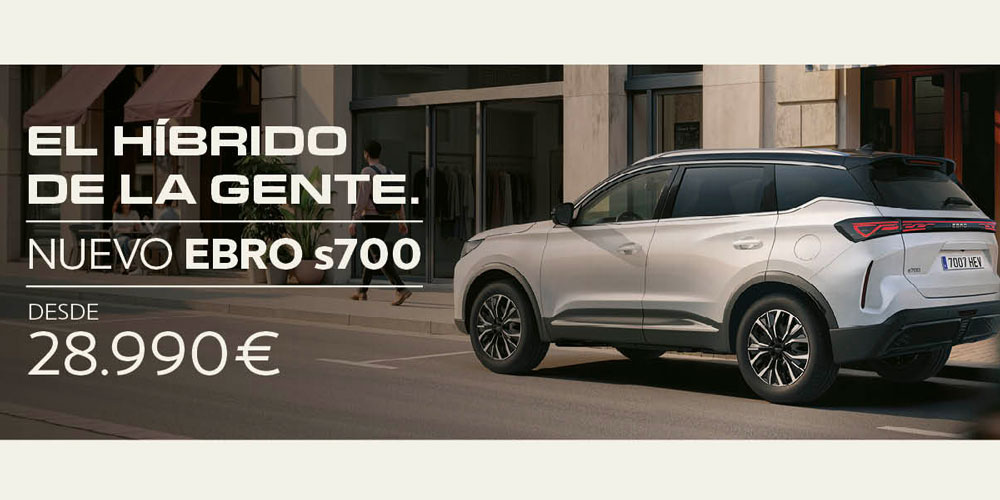 (1) EBRO s700 HEV Comfort desde PVP Recomendado Financiando: 28.990,00 €. Incluye IVA, Transporte e Impuesto de Matriculación (IEMT) calculado al tipo general, descuentos del concesionario, fabricante y descuento adicional por financiar con CA Auto Bank, Spa Sucursal en España, según condiciones contractuales por un importe mínimo a financiar de 20.000,00 € con un plazo mínimo de 60 meses y permanencia mínima de 36 meses. Financiación sujeta a estudio y aprobación de la entidad financiera. PVP recomendado al contado: 31.498,90 €. Oferta válida hasta el 30/04/2026 en Península y Baleares. No acumulable a otras ofertas o descuentos especiales. El modelo visualizado puede no corresponder con el vehículo ofertado. No incluye gastos de gestoría, ni matriculación.