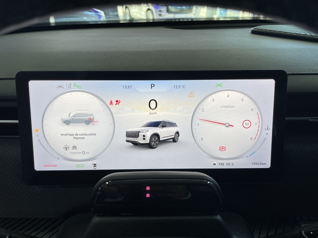 - Acabados de lujo: pomo de la palanca de cambios en negro piano, consola central en negro piano, puertas en cuero sintético y tablero en aluminio y cuero sintético.